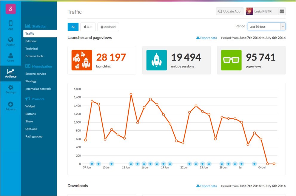 Lanza promociones en los dispositivos móviles, adaptadas a tu público objetivo, puedes elegir un rango de edad, sexo, ubicación, explota las estadísticas de tu aplicación.